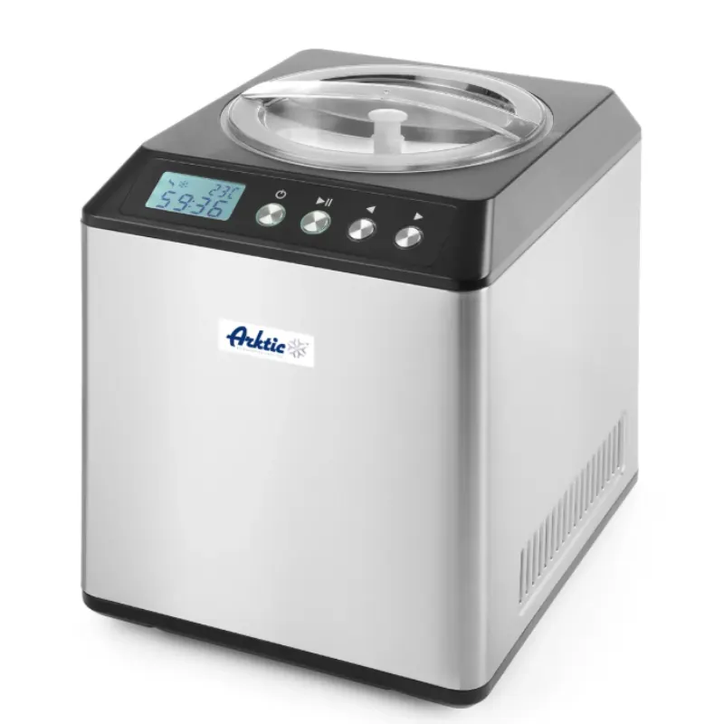 Aparat ne zahtijeva prethodno hlađenje sastojaka, što ga čini jednostavnim za korištenje. Funkcija produženog hlađenja od 2 sata pomaže održavanju savršene konzistencije sladoleda čak i nakon što je gotov. Veliki digitalni zaslon s pozadinskim osvjetljenjem jasno prikazuje radno vrijeme, temperaturu smrzavanja i kretanje miješalice. Miješalica se lako montira i izrađena je od POM materijala, dok prozirni poklopac od polikarbonata osigurava sigurnost uz sustav “Twist-Lock”.