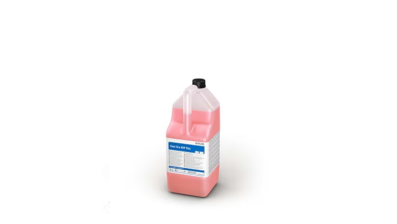 Zahvaljujući visokoj koncentraciji, Clear Dry HDP Plus dolazi u kompaktnom pakiranju od 5 L. To osigurava niske troškove potrošnje te štednju prostora i vremena. Proizvod je kompatibilan s Ecolab dozirnim sustavom, omogućujući precizno i sigurno doziranje.
