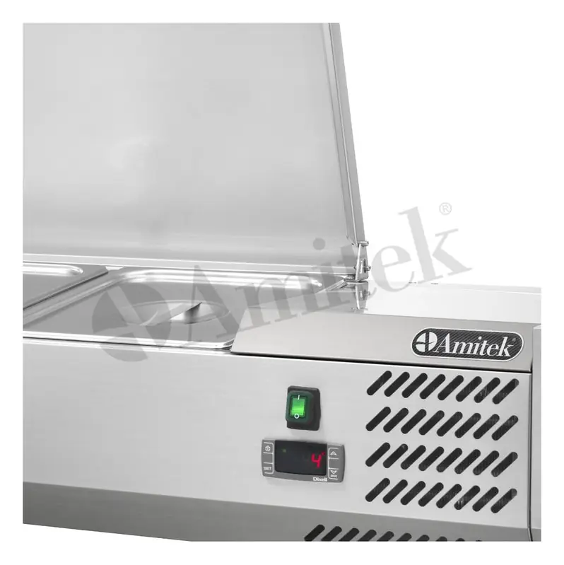 Hlađena nadogradnja za pizza pult AK12433L talijanskog proizvođača Amitek – idealno rješenje da vaši sastojci uvijek ostanu svježi, čime osiguravaju vrhunsku kvalitetu vaših pizza i drugih jela.