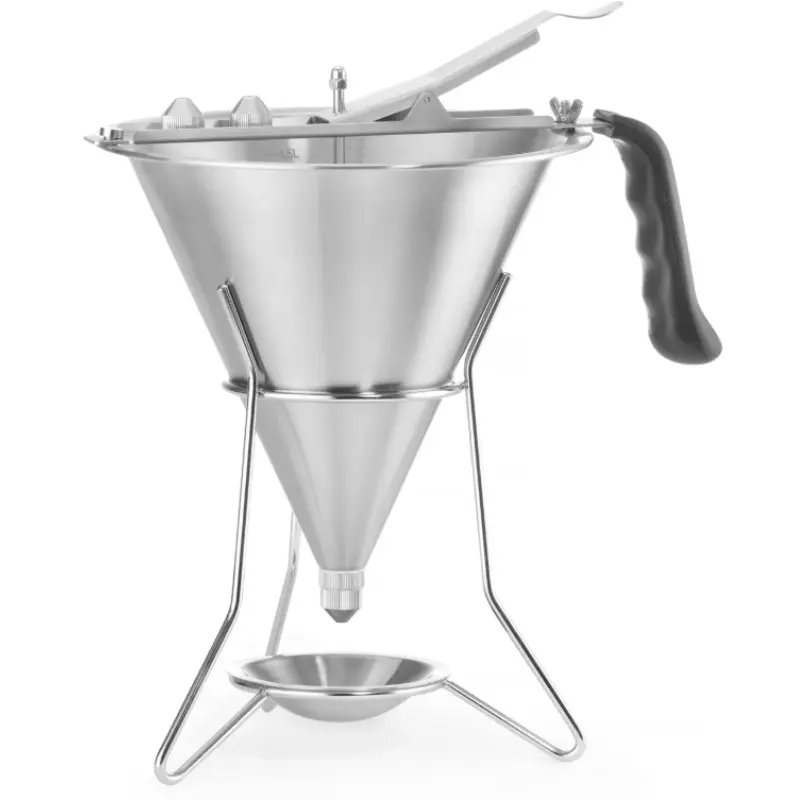 Ovaj lijevak je savršeno rješenje za doziranje umaka različite konzistencije te dekoriranje kolača, torti i drugih slastica. Njegov dizajn uključuje stop-ventil koji osigurava savršeno brtvljenje bez curenja. Uz tri različite mlaznice promjera 4, 5 i 6 mm, omogućuje preciznu primjenu za širok raspon primjena.