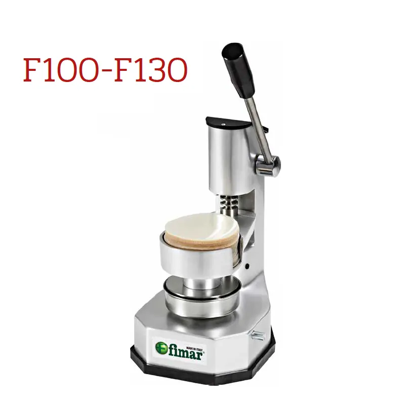 Model F100 izrađuje hamburgere promjera 100 mm, dok model F130 oblikuje hamburgere promjera 130 mm. Kompaktne dimenzije i jednostavno ručno upravljanje omogućuju učinkovitu pripremu većih količina pljeskavica. Lagana, ali stabilna konstrukcija s neto težinom od 5–5,5 kg čini uređaj praktičnim i lako prenosivim. Ovi modeli osiguravaju konzistentnu kvalitetu proizvoda i uštedu vremena u profesionalnim kuhinjama.