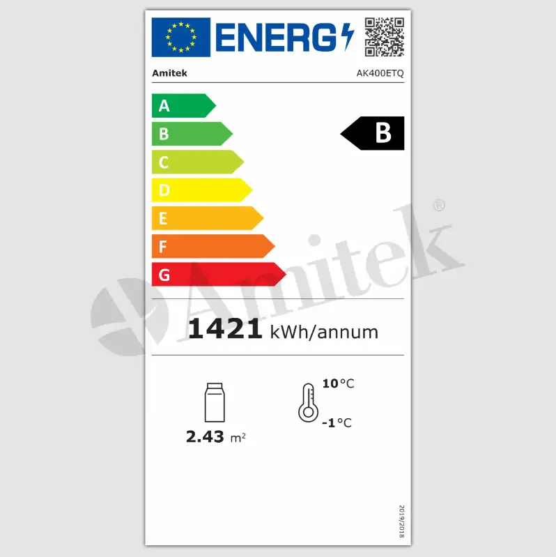 Energetska oznaka B za vitrina za kolače AK400ETQ Amitek