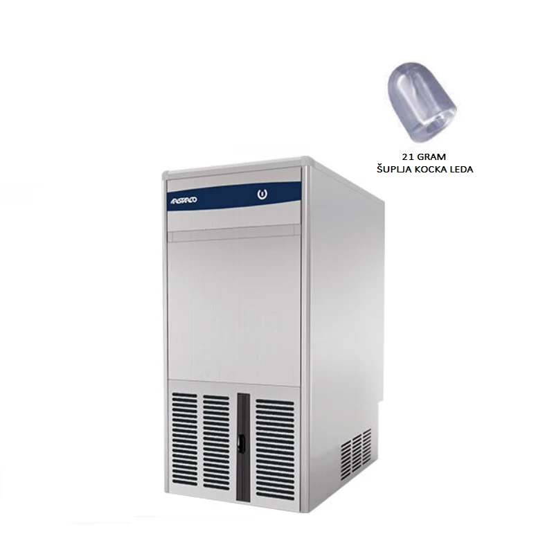 Uređaj dnevno proizvede do 20 kg leda, uz spremnik kapaciteta 5 kg. Zbog svojih kompaktnih dimenzija idealan je za ugostiteljske objekte s ograničenim prostorom, kao što su barovi i kafići. Šuplje kocke brzo hlade piće i lako se drobe, što ih čini pogodnima za koktele i napitke za trenutnu konzumaciju.