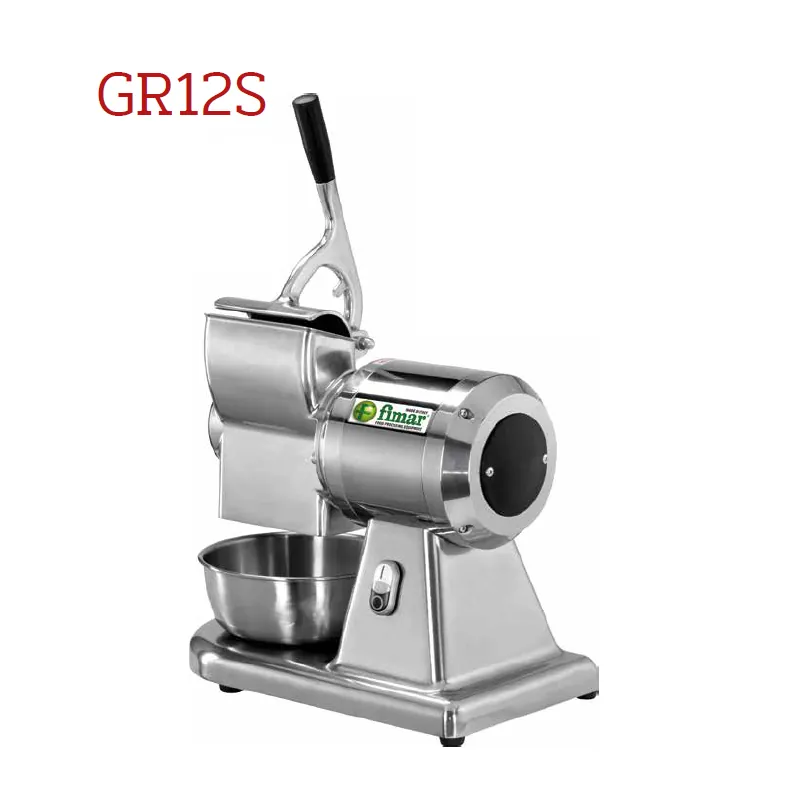 Profesionalni ribež Fimar GR12S izrađen je od aluminijskog kućišta s ulazom za namirnice dimenzija 140 × 75 mm i inox valjkom. Opremljen je zaštitnom rešetkom i mikroprekidačem na ručki, što osigurava sigurnost tijekom rada. Profesionalni ribež Fimar GR12S koristi motor snage 1 HP koji omogućuje kapacitet ribanja do 40 kg na sat.