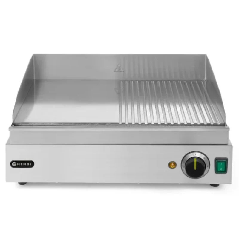 Roštilj Profi Line dizajniran je za profesionalne kuhinje koje zahtijevaju visoku učinkovitost i izdržljivost. Kućište uređaja izrađeno je od visokokvalitetnog nehrđajućeg čelika, što osigurava dugotrajnost i otpornost na intenzivnu upotrebu. Površina za pečenje izrađena je od tvrdo kromirane ploče debljine 9 mm, koja osigurava ravnomjernu raspodjelu topline i jednostavno čišćenje.