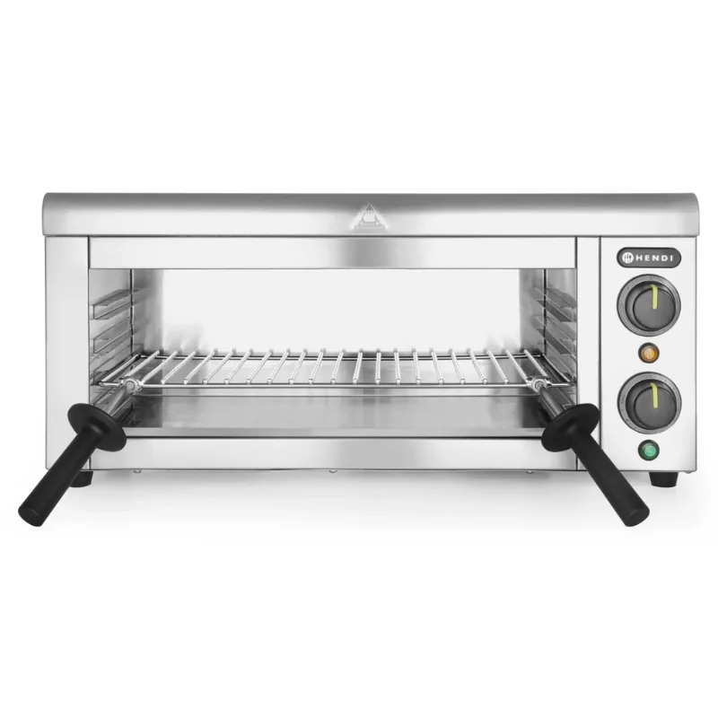 Ovaj salamander omogućuje precizno podešavanje temperature u rasponu od 50°C do 300°C, što ga čini savršenim za zapečenje, tostiranje ili grijanje jela poput sendviča. S ugrađenim tajmerom na 30 minuta i indikatorom rada, jednostavan je za korištenje i prilagođavanje različitim zahtjevima pripreme hrane. Dolazi s rešetkama i posudom za skupljanje mrvica, čime olakšava održavanje i čišćenje uređaja.