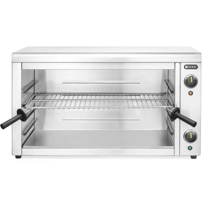 Salamander je profesionalni kuhinjski uređaj dizajniran za tostiranje, zapečenje i završnu obradu jela. Zahvaljujući čvrstoj konstrukciji od nehrđajućeg čelika, ovaj uređaj osigurava dugotrajnost i otpornost na intenzivnu svakodnevnu upotrebu. S rasponom temperature od 50°C do 300°C, Salamander omogućuje precizno podešavanje topline za različite kulinarske potrebe.