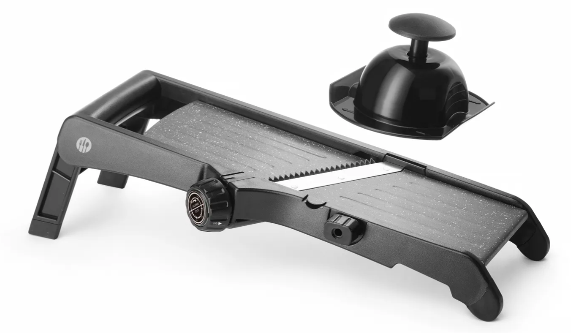 Njena površina s premazom protiv lijepljenja (PTFE) olakšava klizanje voća i povrća, omogućujući brzo i glatko rezanje bez zastoja. Kompaktna veličina čini je praktičnom za svaku profesionalnu kuhinju. Protuklizne noge i kuka za zdjelu osiguravaju stabilnost prilikom korištenja. Uz integrirane noževe za julienne rezove od 3 mm i deblje rezove od 13 mm, ova mandolina savršen je izbor za raznovrsne kulinarske zadatke.