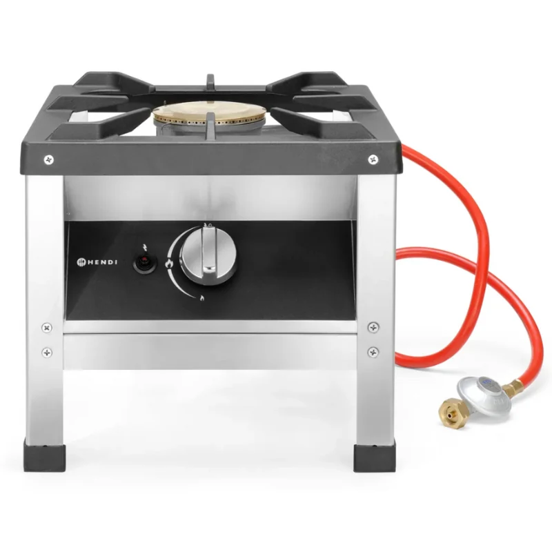 Štednjak na postolju Kitchen Line dizajniran je za propan i butan plin te uključuje set konvertora koji ga čini pogodnim za prirodni plin. Njegov okvir izrađen je od visokokvalitetnog nehrđajućeg čelika, osiguravajući otpornost na koroziju i trajnost. Zahvaljujući termoelementu za elektronsko paljenje, jednostavan je za korištenje, dok priključno crijevo i regulator tlaka pružaju dodatnu sigurnost. Idealno za pripremu raznovrsnih jela na emajliranim tavama.